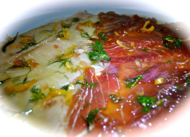 Disporre le fette di tonno e spada Carthago su un piatto da portata.